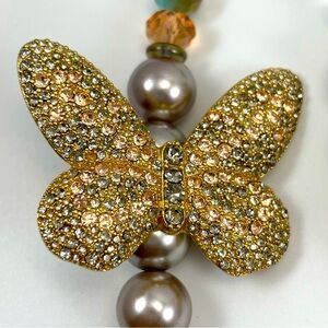 Artisan Handmade Crafted Glass Pearl Rhinestone Butterfly Bold Layered Necklace