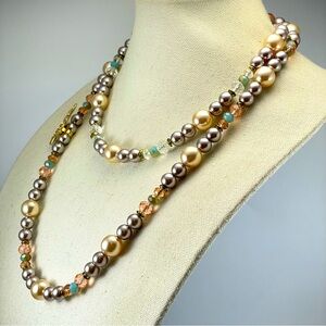 Artisan Handmade Crafted Glass Pearl Rhinestone Butterfly Bold Chunky Layered Necklace Boho Classic Timeless Beautiful Stunning Fun Funky Weighted