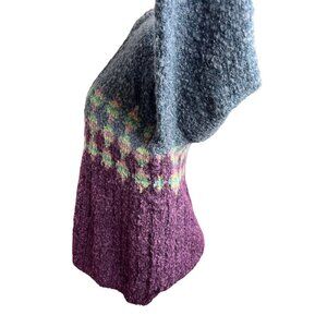 Embrace the vintage and nature-inspired style with this Northern Isles wool blend cardigan. The sweater features an Argyle/Diamond pattern, tight-knit fabric, and long sleeves with a V-neckline. The button-up closure and accents add a touch of elegance to the casual outfit, perfect for winter, fall, or spring. The blue & purple colors and wool blend material make it a comfortable and stylish addition to any wardrobe. This sweater is a perfect fit for women looking for a regular-sized cardigan that exudes a nature-inspired theme.