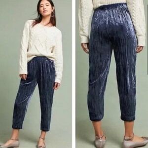 Anthropologie Ettiwa Velvet Crop Pants Blue