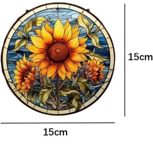Sunflower Stained Suncatcher- Vibrant Yellow and Blue Made Of Acrylic