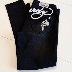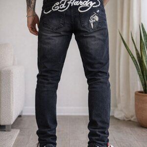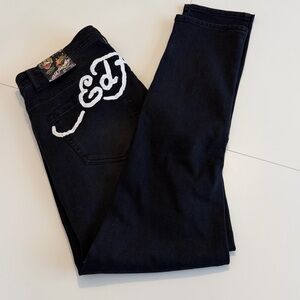 Ed Hardy Black Embroidered Skinny Tapered Jeans 34x30 NWT