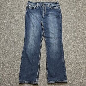 Y2K Code Bleu Blue Modern Rise Bootcut Jeans Size 14R Embroidered