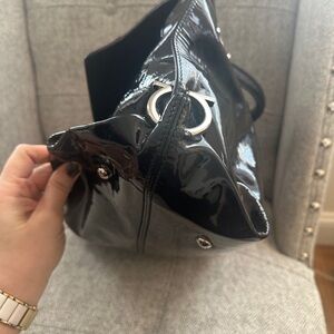 \#SalvatoreFerragamo \#Ferragamo \#DesignerBag \#LuxuryHandbag \#PatentLeather \#Satchel \#Crossbody \#ClassicStyle