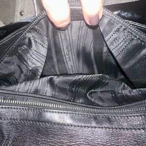 Closure: Signature Gancio accent flip-lock closure and interior zip closure