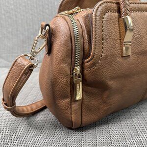 Gussaci Women's Handbag Crossbody Bag Satchel Medium Brown Faux Leather