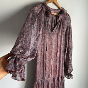 You're gonna reGRETA not snagging this #babecrew fav! Mark my words.. you'll want to add this beauty to your cart! This Forget Me Not printed maxi dress is perfect for fall and features a v cut neckline with decorative drawstring, long sleeves with smocked wrists, and long flowy silhouette. Pair with your favorite heels or booties and a dainty necklace