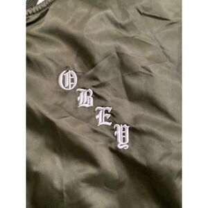 Obey Worldwide Olive Green Bomber Jacket Embroidered Cities Roses Womens Small