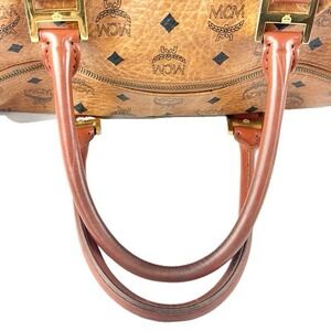 Authentic MCM Visetos Shoulder Boston Bag Brown Leather