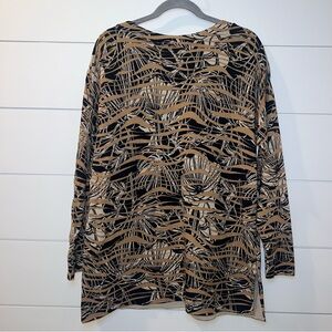 Chico’s Button Accented Boat Neck Tunic Sweater Sz 2 (L/12) Abstract Ribbed Trim
