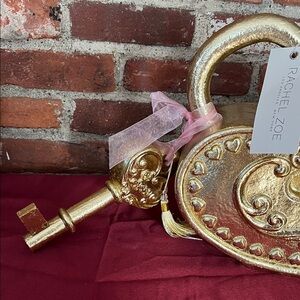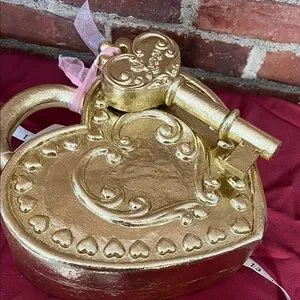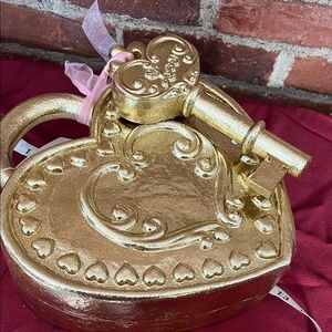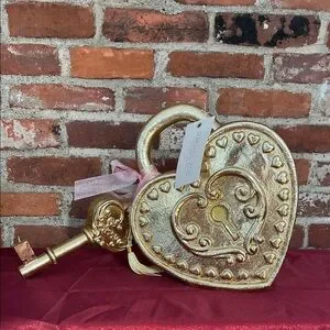 Elegant gold heart lock with intricate key design. Ideal for decor or gifting.