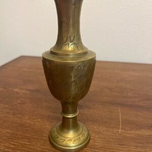 Add timeless vintage charm to your home with this 7-inch etched brass vase.
