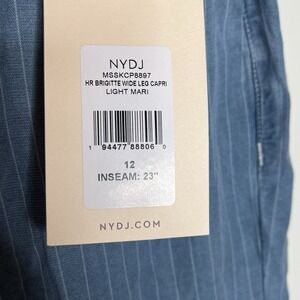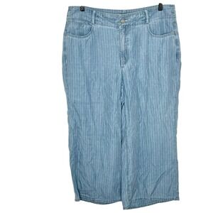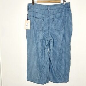 NYDJ High Rise Brigitte Wide Leg Capri Pants Blue Striped Womens 12 Chambray