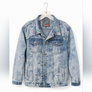 Men's Lion Dynasty Distressed Denim Jacket - Size Large