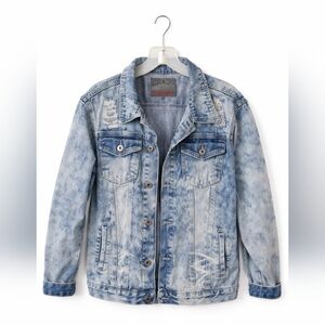 Classic light-wash denim jacket by Lion Dynasty featuring an acid-wash finish and subtle distressed detailing. Structured yet comfortable with a relaxed fit, button-front closure, and chest flap pockets. Also inner pockets!!!! I don't know about you, but that is such a plus! Easy layering piece for year-round wear, and a place to stash your phone.