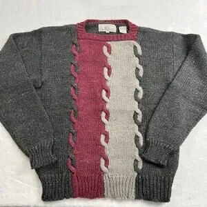 Howland Steinbach Vintage Knit Sweater Women's size Small Gray Maroon 1980s