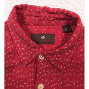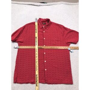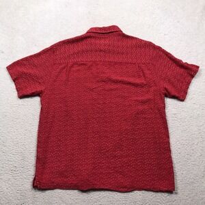 Toscano Silk Blend Button Shirt Mens Medium Red Geometric Short Sleeve Casual ***Since Clothes Sizes vary between Brands & Clothing can shrink from washing, Please See Measurements in Photos to ensure desired fit***