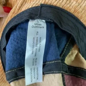 Urban Outfitters Patchwork Corduroy Bucket Hat. Tan, maroon and blue colors. Raw edge. One size. Nice pre-owned condition.