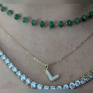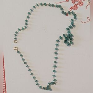 14k Yellow Gold Emerald Beaded Rosary Style Station Necklace