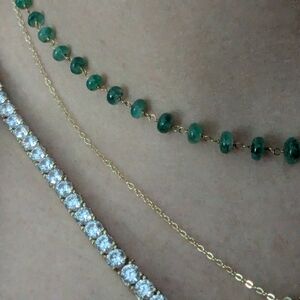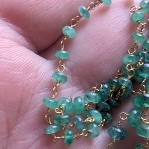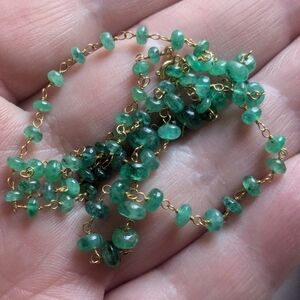 Beautiful rosary style solid 14k Yellow Gold necklace with natural cabochon emerald beads.