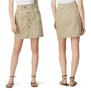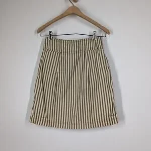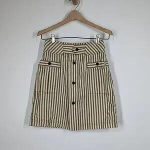 Mara Hoffman Lici Linen Skirt High Waisted Striped Button Front Size 2 Preowned