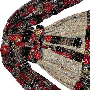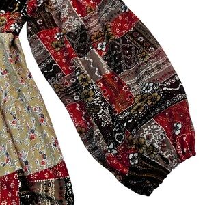 Vintage 70s Patchwork Prairie Maxi Dress Balloon Sleeves XS Boho Hippie