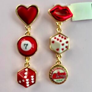 Betsey Johnson Red & Gold Earrings Pop Top pool Ball Lips Heart Dice
