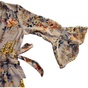 ☆Detail: Long flutter sleeve wrap v neck romper keyhole back lined spring floral