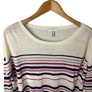 Joie Maine Stripe Linen Pullover Sweater Size Small 3/4 Length Sleeves Boat Neck