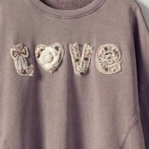 EMBELLISHED LOVE MOCHA CREWNECK SWEATSHIRT!!! This is not your average top!!!! The QUALITY IS ABSOLUTELY PERFECTION!!!! Boutique purchase!!!! L