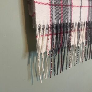 NWOT Womens Light Academia Preppy Cozy Fringe Tartan Plaid Scarf Cream Grey