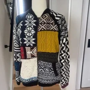 DESIGUAL Multicolor Geometric Zip-Up Sweater Cardigan Jacket M
