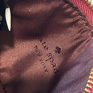 Elegant magenta leather wristlet by Kate Spade. Features a sleek design with gold-tone accents.