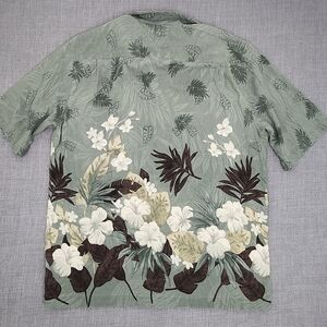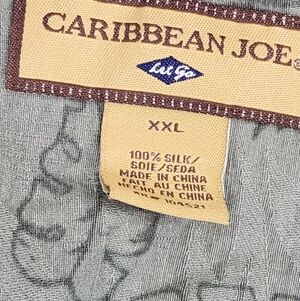Used Condition. Flaw is small tear below Button, pictured. Caribbean Joe 100% Silk Hawaiian Button Down Floral Printed Shirt. Size XXL