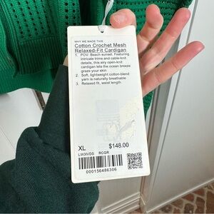 NWT Lululemon cotton crochet mesh relaxed fit cardigan Raceway Green size xl
