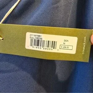 Beautiful dress. Amazing blue color. Bottom has blue tassel at the bottom in a deeper blue color. Lined. Shift Dress. One shoulder. Amazing quality. No flaws to note. Please refer to photos for full description and condition