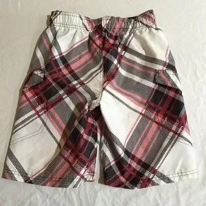 OP Swim Trunks Boy M (8) Plaid Red White Black Drawstring Waist Board Shorts