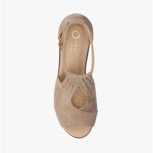 Journee Collection Kedzie Wedge Heeled Sandals Faux Suede Taupe Size 8.5 – New