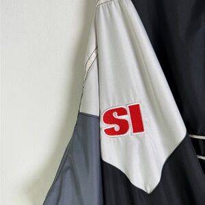 Lightweight yet durable polyester shell with full-zip front, mock neck collar, elastic cuffs, and adjustable hem. A staple piece for fans of vintage NFL gear, blokecore, gorpcore crossover, and Y2K sportswear aesthetics.