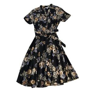 Nanette Lepore size 2 BLACK DREAM CLOUD belted pleated Floral Midi Dress