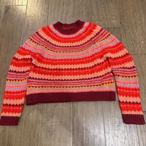 American Eagle Fair Isle Sweater Women Red Orange Pink Blue Cozy Pullover S