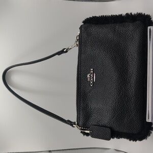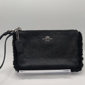 Coach Pebbled Wristlet & Shearling Trim