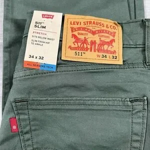 Levi's 511 Slim Fit All Seasons Tech Men's 34x32 Stretch Green Pants New. Measures 33X31