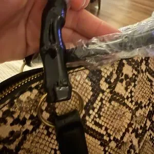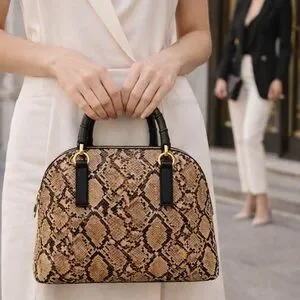Stylish and versatile snake print handbag perfect for any occasion. Features a chic design with black accents.