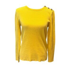 Lauren Ralph Lauren Women's Yellow Ribbed Crewneck Sweater L Gold Buttons