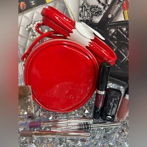 Elegant Marc Jacobs lip gloss set. Includes vibrant shades. Comes with a stylish red case.