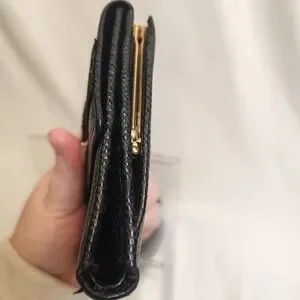 Features: The interior includes card slots, a bill compartment, and a kiss-lock or zip coin pocket.