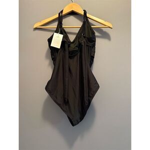 The B2PRITY one-piece swimsuit in size small is designed for women and features a classic black color. It includes a halter neck and ruched detailing, crafted from soft fabric for comfort. This solid pattern swimsuit is ideal for beach outings, poolside lounging, or tropical vacations. The item is new with tags.