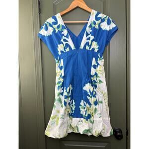 NWT Anna Cate Ava Mini Bubble Hem Resort Floral Cotton Dress Indigo Blue XS