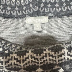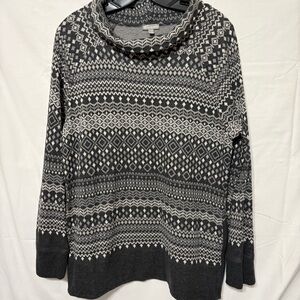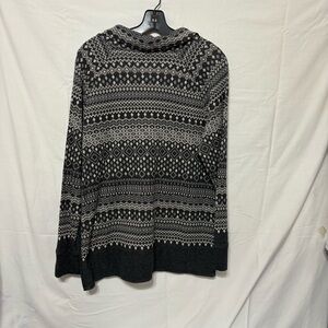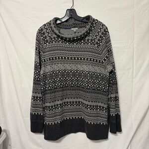 T by Talbots grey, black, and white Fair Isle print longline cowl neck sweater